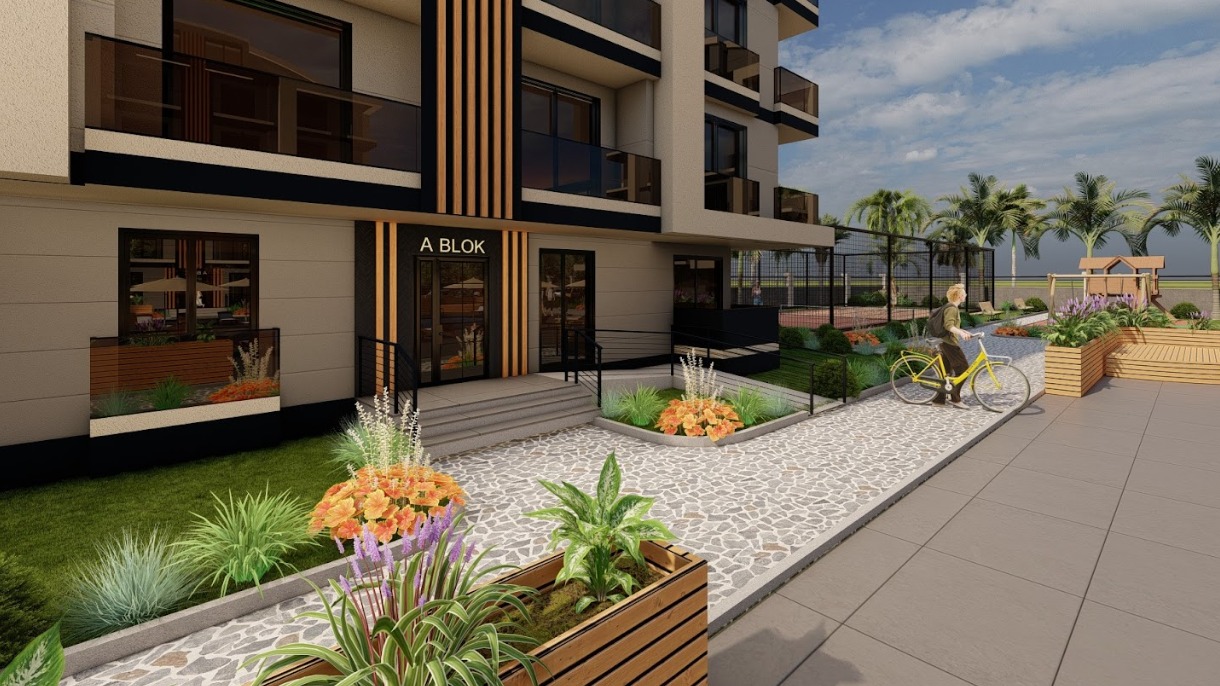Shining star in Döşemealtı, the rapidly developing region of Antalya, this special project of ours, located in Yeniköy, is literally in the heart of the city. Yeniköy attracts attention not only with its natural beauties but also with its rapidly increasing demand. This project has an island-based concept completely surrounded by roads. This unique island-based concept offers its residents ease of transportation and promises a more spacious and private living space. You can enjoy being just a few steps away from all the needs of daily life. Our project consists of 3 separate blocks with 4 floors and contains 50 flats in total. These apartments, where you can find traces of first-class materials and high-level workmanship in every detail, also impress with their modern and decorative design. These living spaces, which have an aesthetic elegance both inside and outside, open the doors of a comfortable and prestigious life to you.