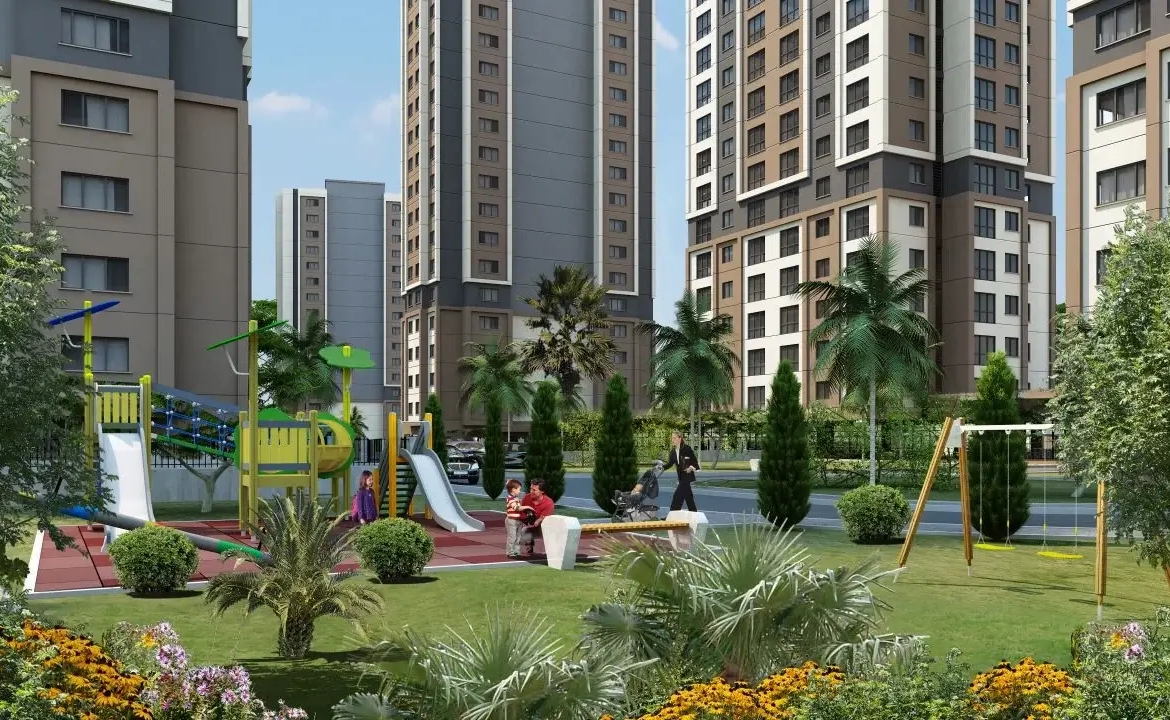 Yucelpark Kartal Home, a modern apartment building for singles and families with children, is located in Kartal on Istanbul’s Asian side. Apartment sizes range from 1+1 to 4+1 for singles and families.