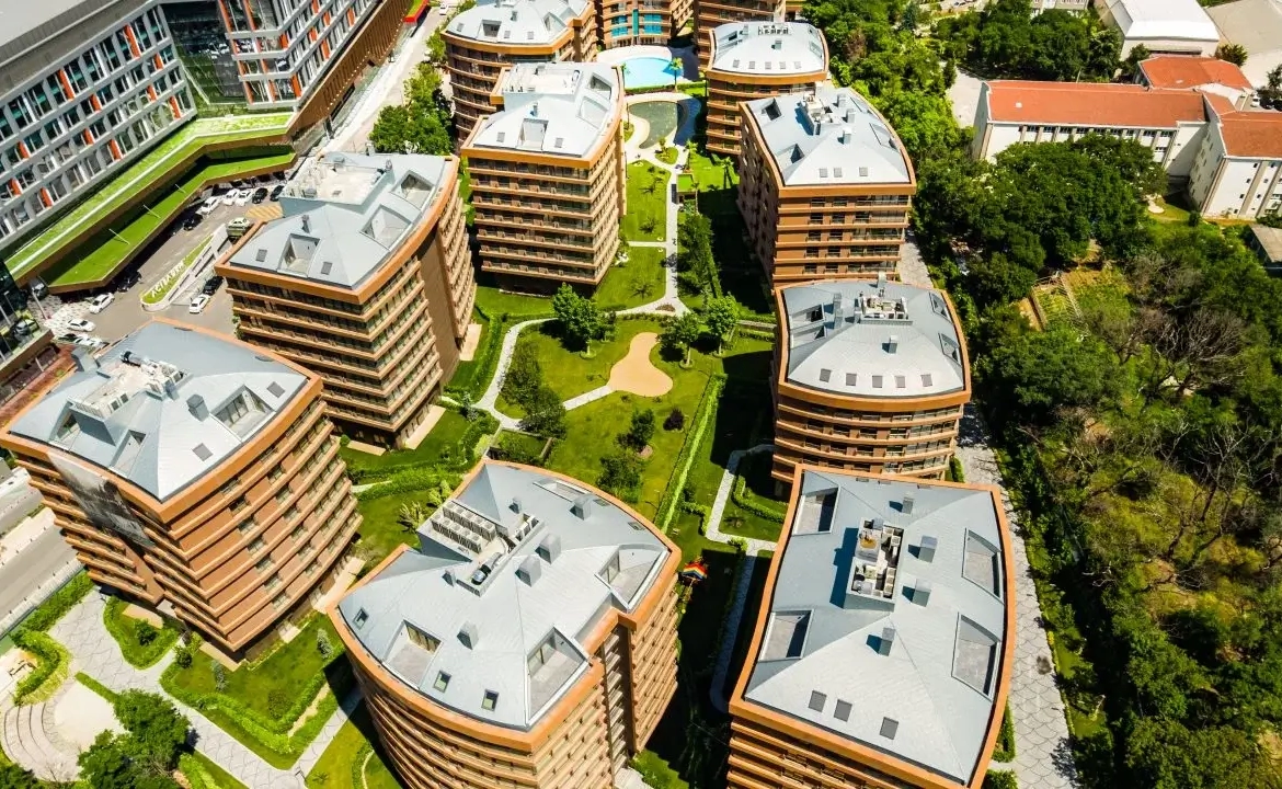 This project was created by a famous developer in Istanbul. It is finished and available for purchase. The project land, which is suitable for Turkish citizenship and has title papers ready, is 28,156m2, has thirteen blocks, and has a total of 196 units. Customers can select from two to five bedrooms, with sizes ranging from 185 to 559 square meters, all of which were designed with a family concept in mind.