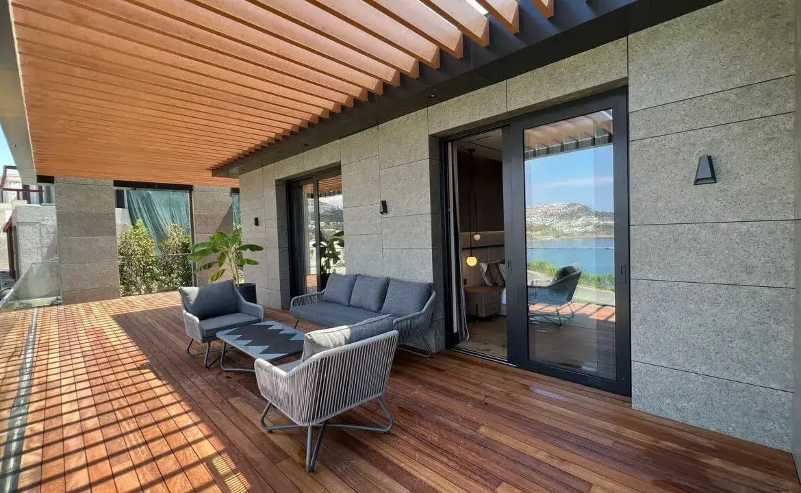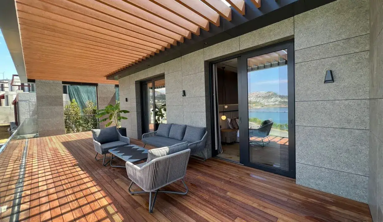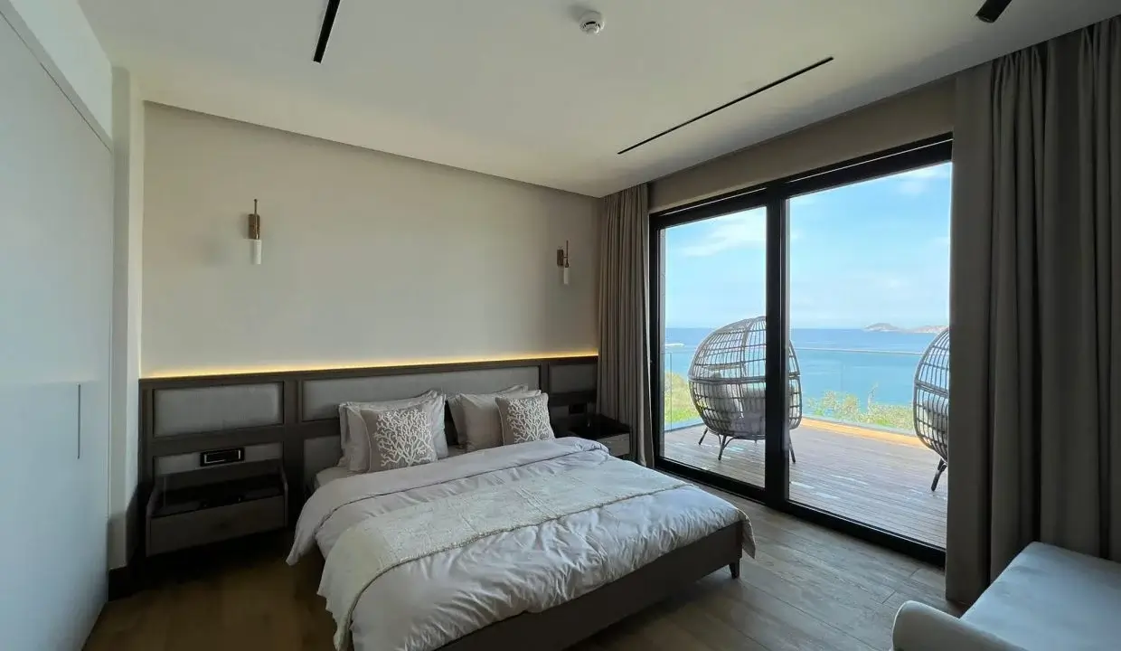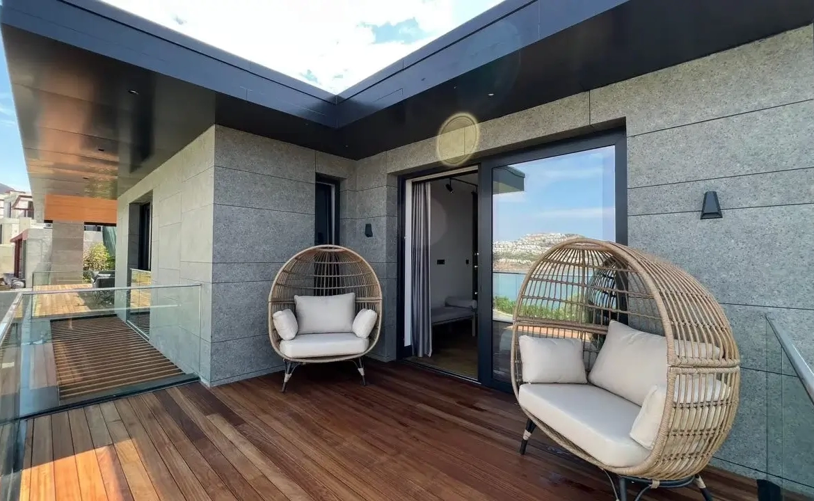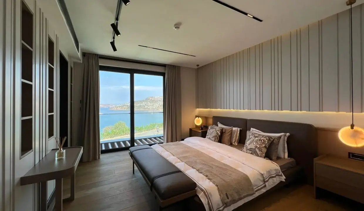 The project consists of 65 villas 5-6 bedroom and 18 apartments 2-3 bedrooms with amazing sea view. Velux Yalikavak offers private beach and pier as well as metatherian and European restaurants. Every detail in our project thoughtfully thought through and with great care being implemented. The Concierge service are ready 24 hours to provide best services to residents. 5-6 bedroom villas are in the front line of compound which gives you fully panoramic view to Aegean sea.