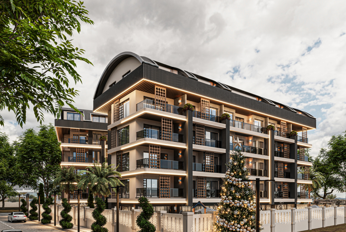 1+2 flat for sale in the new modern complex Apple Garden 1 in Oba location, 2 km from Alanya center. This rapidly developing region is very popular among tourists and investors as it has everything you need for a comfortable life. A new luxury residential complex with its own infrastructure, located in a popular holiday resort, 1 km from the center of Alanya. All the necessary urban infrastructure is located nearby: cafes, restaurants, bars, shops, shopping malls, hospitals, pharmacies, parks, banks and public transport stops. Modern design solutions, unique location, breathtaking views, sea blue, magnificence and splendor. Apple Garden 1 is a 4-storey building with modern architecture. The complex’s rich infrastructure and friendly staff will help you fully enjoy life.