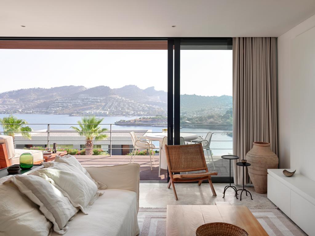 YOU CAN SWIM IN THE TURQUOISE WATERS OF THE PRIVATE TİLKİCİK BAY, AND TAKE IN THE VIEW OF THE UNIQUE COAST IN THE EVENING. ENJOY THE SOCIAL LIFE IN YALIKAVAK AT NIGHT. BLUE HOUES OF THE SKY AND THE SEA, AND THE GREEN NATURE COMPOSE THE PALETTE OF THE BODRUMBODRUM KIYI EVLERİ VIEWS. THE THOUGHT OF A PEACEFUL LIFE NEAR THE CITY BECOMES REALITY. BODRUMBODRUM KIYI EVLERİ, SITUATED NEXT TO THE SEASIDE, PROVIDING A FOUR-SEASON HOME EXPERIENCE AND METICULOUSLY DESIGNED BY TANJU ÖZELGİN, OFFERS VARIOUS VILLA AND STUDIO APARTMENT OPTIONS OF 33 TYPES.