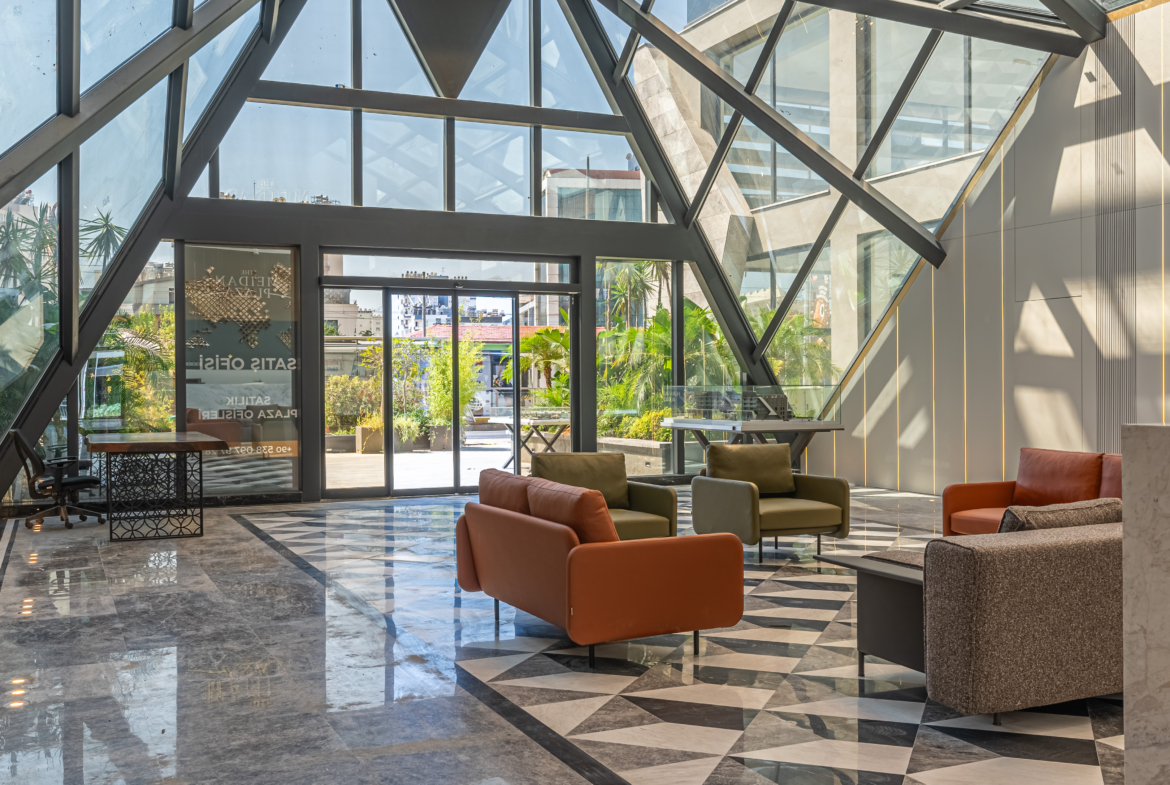 Meidan Plaza is a commercial property containing main street shops and premium offices. It has a reception at the main entrance of the offices. Meydan tram station is just in front. Downtown Kaleiçi is in 15 minutes’ walking distance. Characteristics of the Meidan Plaza project: Outdoor parking with a 110-car capacity. Underground parking garage with a 63-car capacity. Reception area (you can access to block A and block B through the reception area). Digital access to offices with card entry system. Each block has a modern lobby design Security and surveillance system. Project management staff.