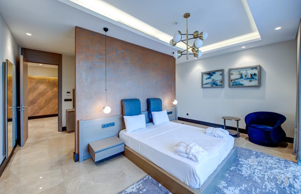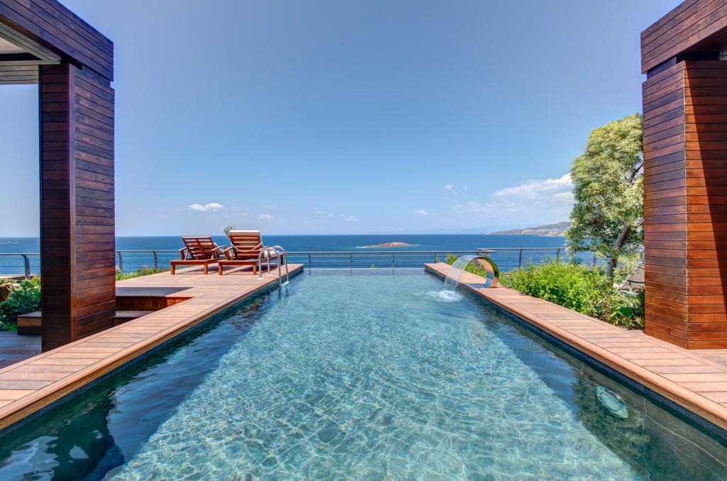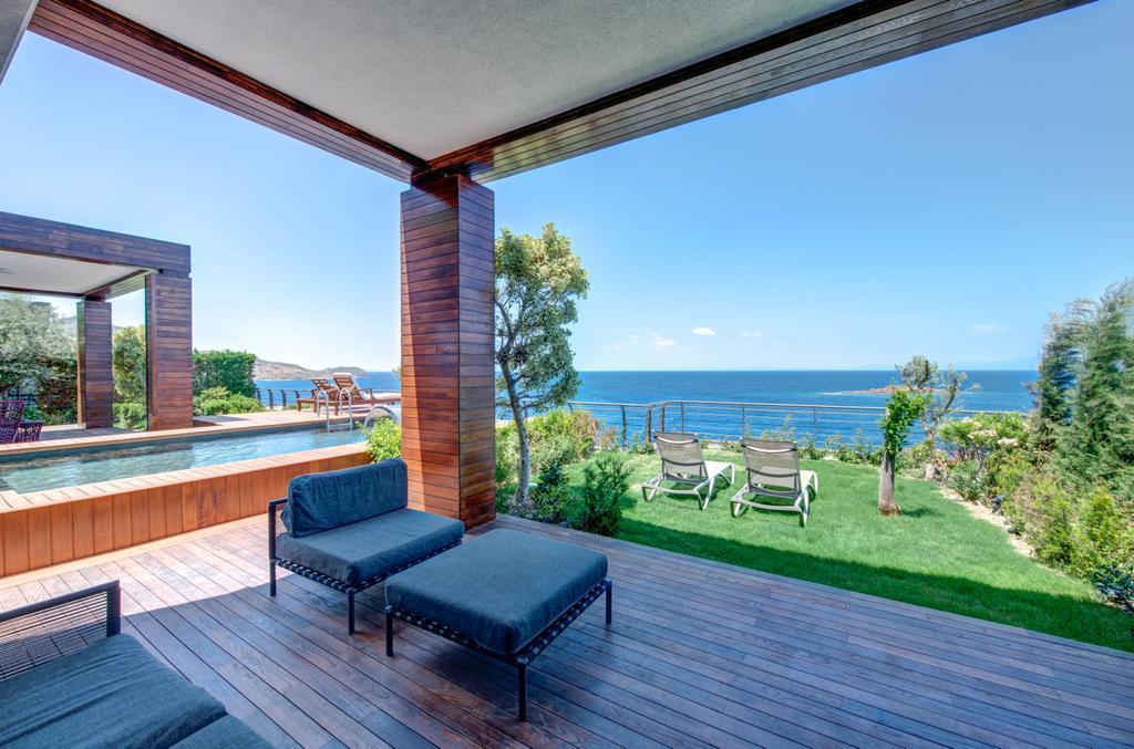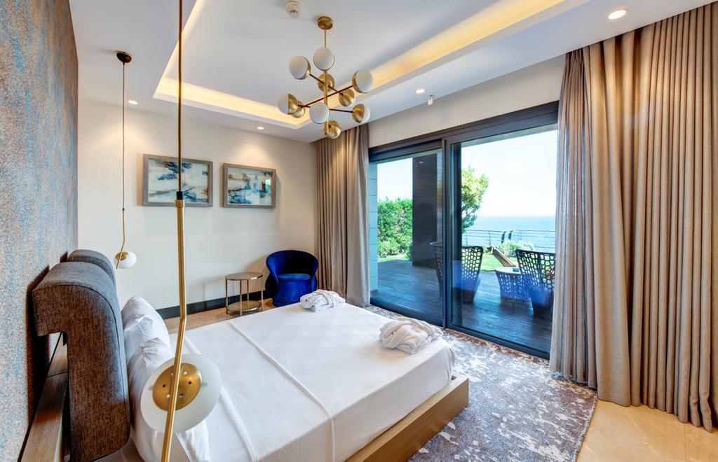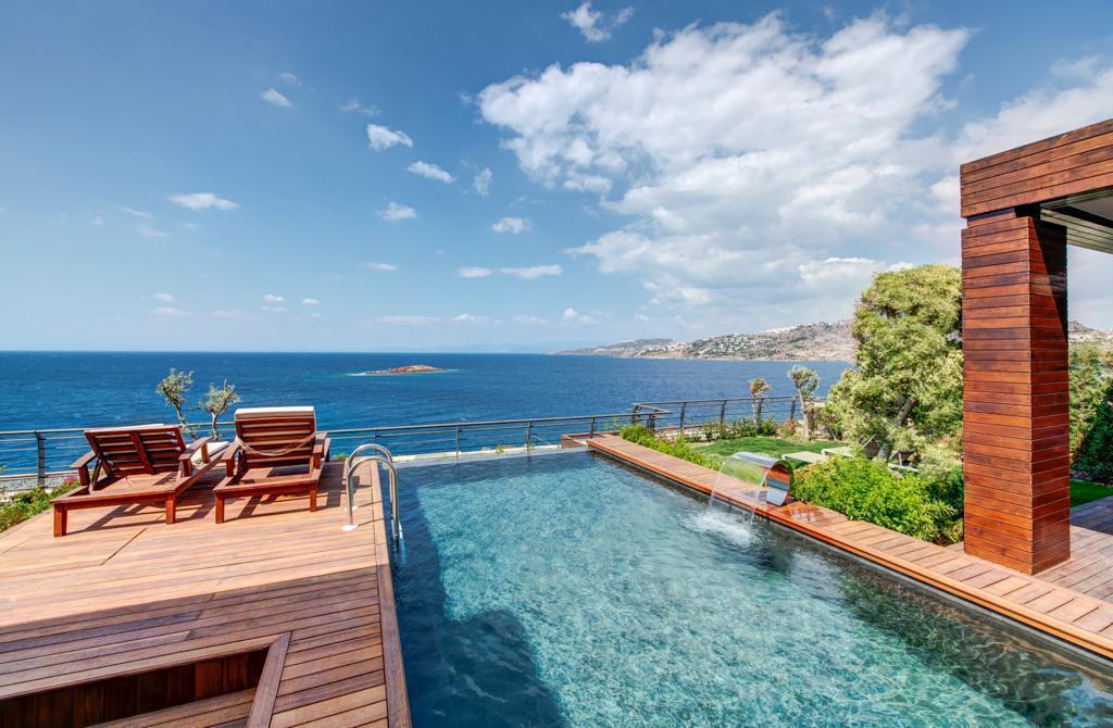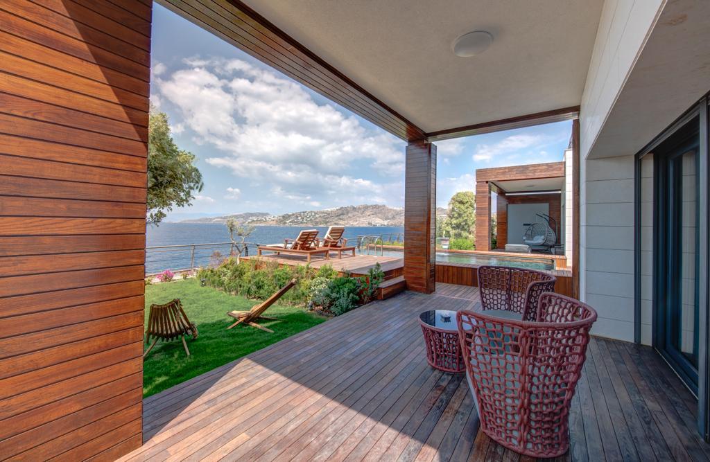 The Elysium Yalikavak consists of 13 unique deluxe villas for sale in bodrum. Single-storey houses with large verandas and gardens promise a dream vacation with their stylish and luxurious architecture, and a seafront location on a peninsula surrounded by blue at the top. The Elysium offers beachfront villas in bodrum for sale. The Elysium Yalikavak features a restaurant, outdoor swimming pool and fitness center. There is also a bar, garden, and private beach area. Private parking and 24-hour reception are available. Paid airport shuttle service is provided.