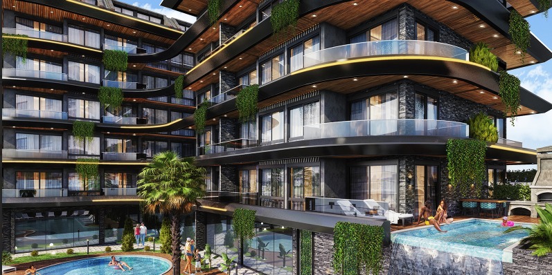 New premium class project located at 230 m from the sea in the area of Kestel. The complex consists of 2 blocks, 46 flats 1+1, 2+1 dublexes and 2+1 with their own private pool and terrace.