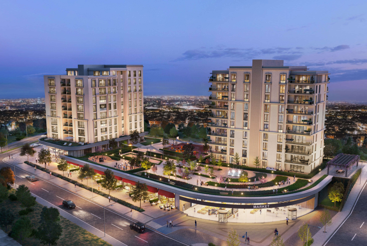 Очень современный комплекс с характерным и элегантным архитектурным дизайном. Проект предоставляет все удобства и удовлетворяет все повседневные потребности своих жителей, такие как охрана, гостиничные услуги, бассейны, тренажерные залы, турецкие бани, детские игры, рестораны и кафе.