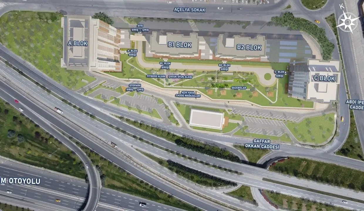 Квартиры на продажу, построены на земельном участке площадью 90,874 квадратных метра. Зеленая зона из 14.000 м2, парковка 5.750 м2 и общая зона 702 м2. Апартаменты имеют просторные планы этажей с высокими потолками и богатыми социальными удобствами, все это в тихой и уютной обстановке. План состоит из четырех блоков. Блоки Б1 и Б2 имеют 12 этажей, С Блок имеет 18 этажей и A Блок имеет 25 этажей. В общей сложности, насчитывается 515 однокомнатных квартир, 462 квартиры и 53 коммерческих объектах.