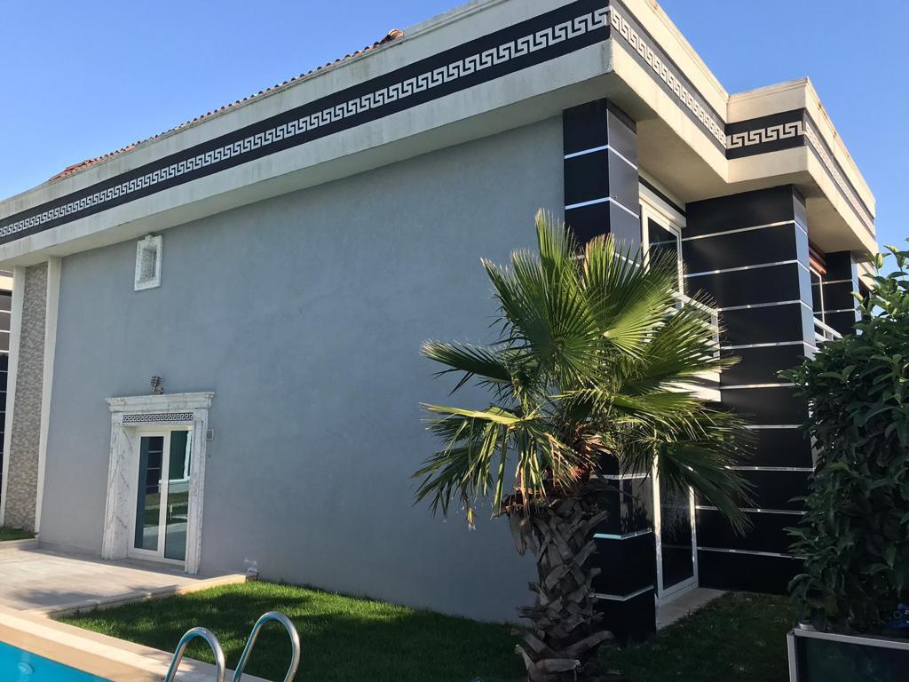 This villa is located at a boutique compound comprising of 4 villas in Buyukcekmece. It is suitable for the ones who desires quiet, chill and isolated lifestyle. This ready-to-move project has been built on 2020 m2 land area. Construction area was 6900 m2. The compound itself is comprised of 2 twin and 2 detached villas. The villa for sale has 8 bedroom and 1 living room and it has 650 m2 gross, 560 m2 net. All the materials and furnishings have been choosen with utmost delicacy by developer. The handles was made of golden leafs, the ceiling edges also. All the doors are carved so, these are not even carried by a man himself. The floor has a vintage motive. The decoration is totally jaw dropping.